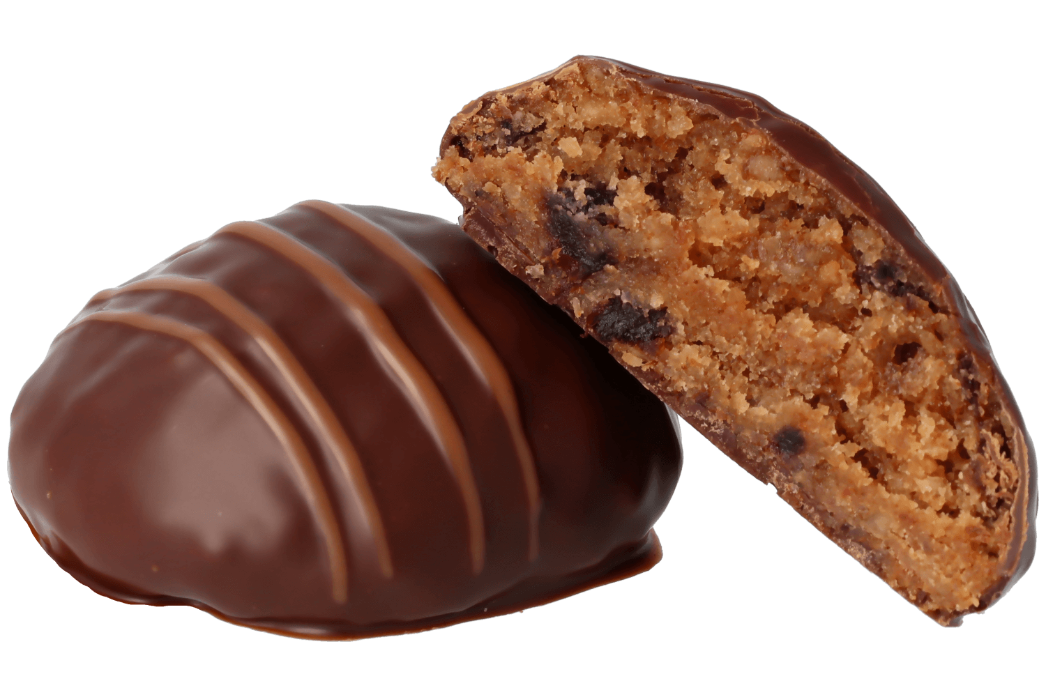 - hauchdünner zartbitterer Schokoladenüberzug mit Schweizer Couverture